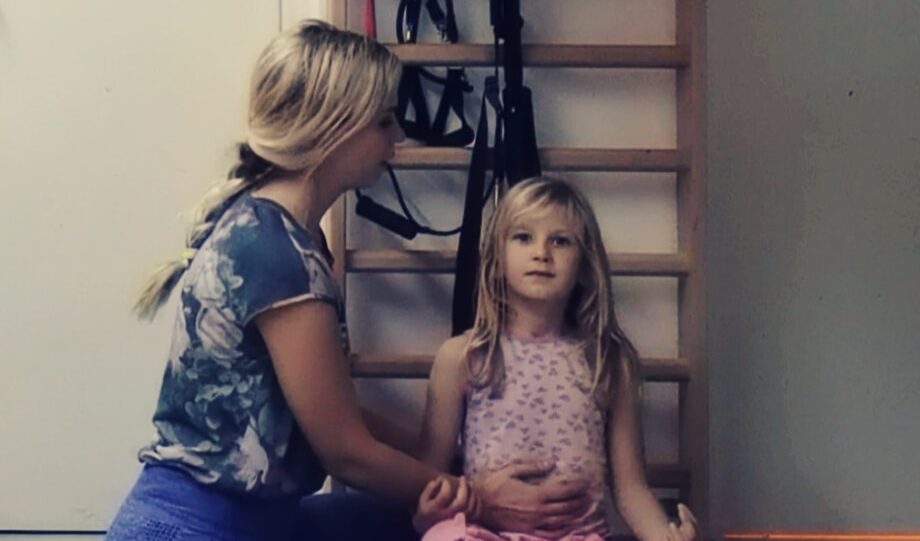 Tukaj sva, mama in hči. Dihava in spoznavava pravilne tehnike dihanja.