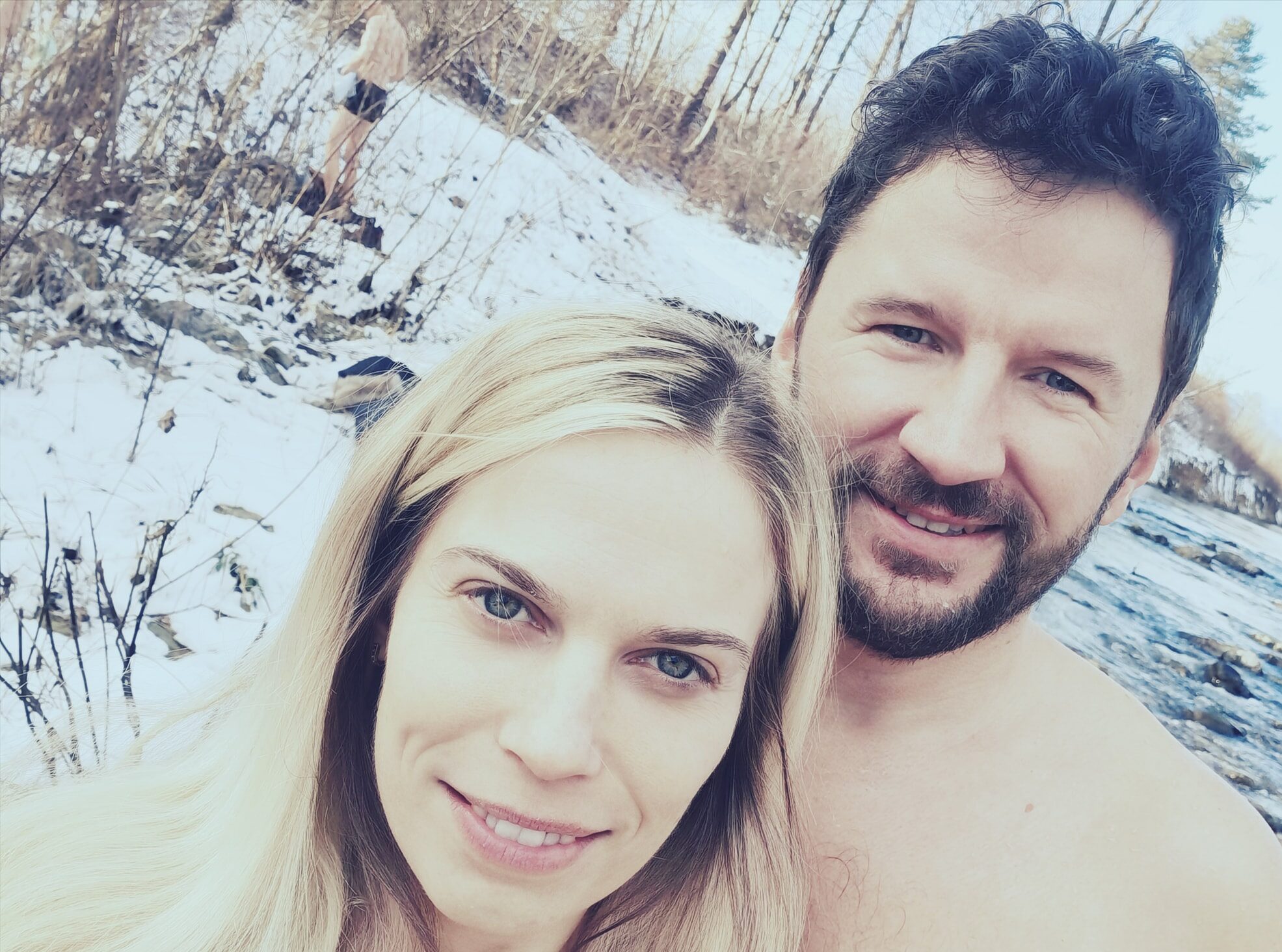 Najin zakon je res poln čudnih zmenkov. Poleti me moj dragi vabi, da hodiva po vroči žerjavici, pozimi pa ga jaz vabim v ledeno vodo. Ah, ni nam dolgčas. 🤣🔥❄️
